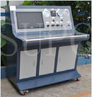 ? 水壓強(qiáng)度試驗(yàn)機(jī)—液壓強(qiáng)度測(cè)試臺(tái)可分為: 手動(dòng)按鈕設(shè)備、半自動(dòng)設(shè)備、計(jì)算機(jī)設(shè)備三種配置。主要是根據(jù)客戶工況要求以及其他要求選型,檢測(cè)目的是測(cè)試產(chǎn)品的工藝檢測(cè)流程、常見(jiàn)的有管線、閥門(mén)、容器、換熱器或檢修期間因改動(dòng)而焊接過(guò)的工藝管道和設(shè)備,以確保各接頭或焊縫強(qiáng)度,使裝置能安全承受正常的操作壓力。基本原理為:利用現(xiàn)場(chǎng)的低壓氣源,通過(guò)思明特氣動(dòng)泵完成對(duì)高壓的輸出,再由思明特控制系統(tǒng)完成對(duì)壓力的控制和數(shù)據(jù)的采集,從而完成對(duì)整個(gè)水壓強(qiáng)度測(cè)試的過(guò)程。采用計(jì)算機(jī)控制試驗(yàn)過(guò)程,利用思明特編程軟件,最終實(shí)現(xiàn)水壓強(qiáng)度檢測(cè)的自動(dòng)化控制,能夠顯示試驗(yàn)時(shí)間、試驗(yàn)壓力和試驗(yàn)次數(shù)等值,采集水壓/液壓試驗(yàn)曲線,試驗(yàn)結(jié)果可自動(dòng)保存,可打印輸出.測(cè)試步驟:對(duì)測(cè)試件進(jìn)行注液、排氣、密封、增壓、到達(dá)壓力后停機(jī),進(jìn)入保壓計(jì)時(shí)狀態(tài),完成對(duì)被測(cè)件的水壓強(qiáng)度測(cè)試。一般為工作壓力的1.5倍。