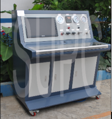 氣瓶?jī)?nèi)水壓試驗(yàn)機(jī)(鋼瓶?jī)?nèi)測(cè)法水壓試驗(yàn)機(jī))壓力范圍0~45mpa,介質(zhì)為靜止的清水,系統(tǒng)內(nèi)置高壓泵,實(shí)現(xiàn)對(duì)壓力高的高壓打壓,高壓保壓,高壓泄壓的測(cè)試效果,具體的測(cè)試步驟為:注水→打壓→保壓→泄壓→輸出數(shù)據(jù)的過(guò)程。”是用于針對(duì)鋼瓶,氣瓶,非標(biāo)纏繞瓶,軍工纏繞瓶的內(nèi)水壓測(cè)試的范式,壓力范圍:0.1~45Mpa,介質(zhì)為靜置的液體,采用思明特增壓泵完成對(duì)壓力的增壓,計(jì)算機(jī)壓力控制系統(tǒng)控制壓力和控制增壓速率。